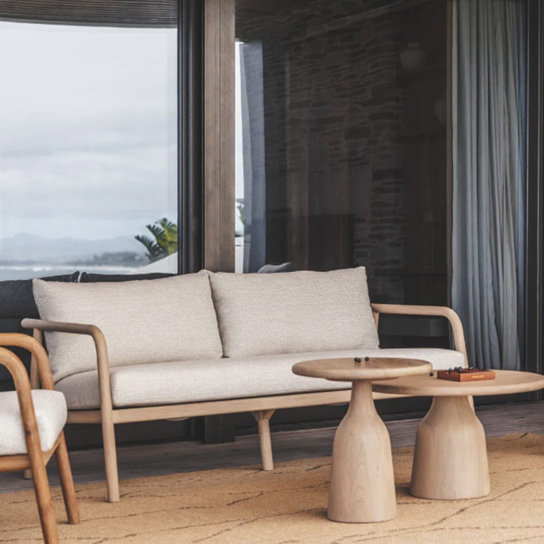 The Anastasia teak sofa will bring outdoor elegance to covered exterior areas. This three-seater is composed of solid teak and features easy-drain foam cushions upholstered with sunproof Balneario fabric. The rich, warm tones of teak work in harmony with the two versatile colourways of the fabric to create a sofa that invites relaxation and enjoyment.