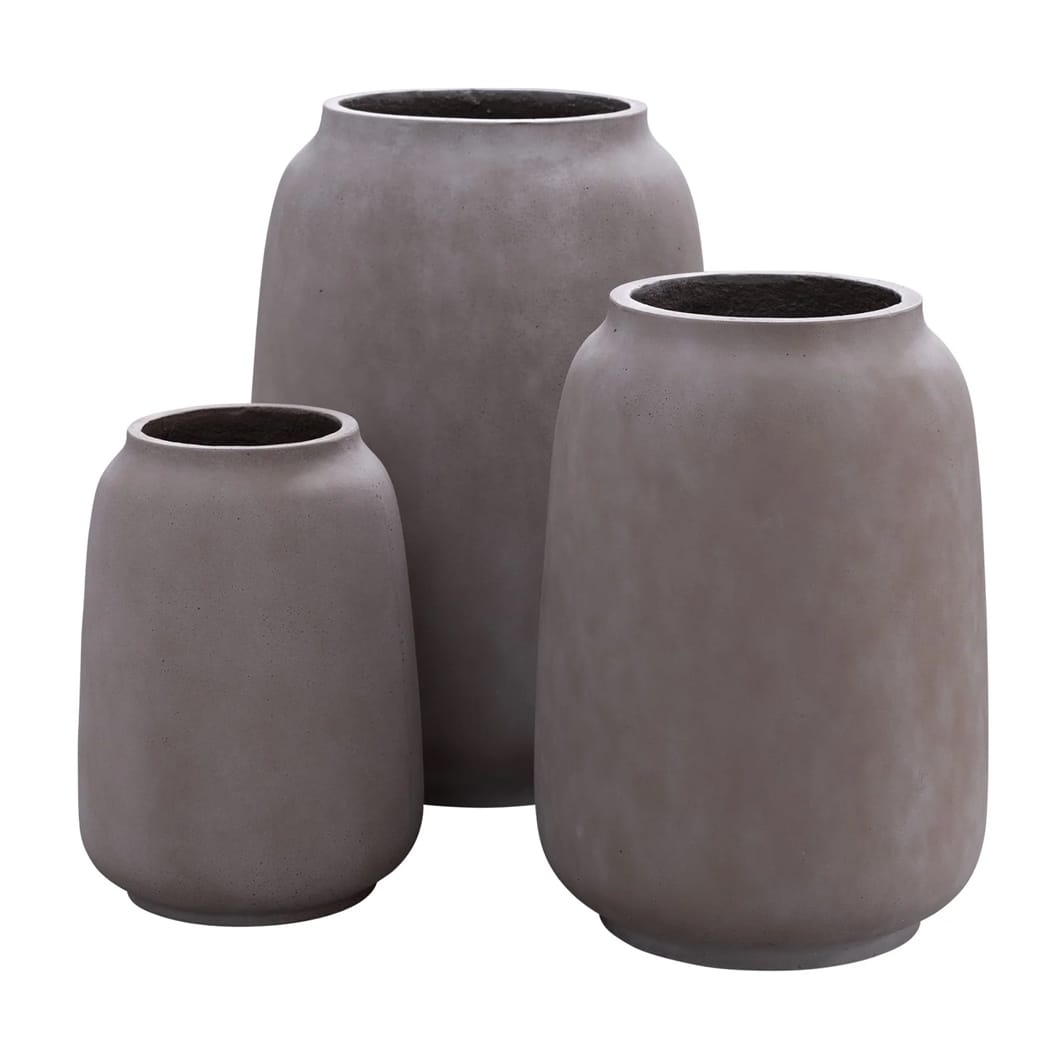Annam is a hand-finished in Vietnam design that will bring both durability and charm to gardens, patios or balconies. Made of a clever combination of cement, sand and fibreglass, these durable yet lightweight planters will withstand the elements, while allowing for easy repositioning. Drainage holes help to keep your plants happy and healthy. Available in three sizes and three earthy colourways. Outdoor and indoor use. Due to it’s handmade nature variation in size, colour and texture will occur. Styles well with the Halong Planters.