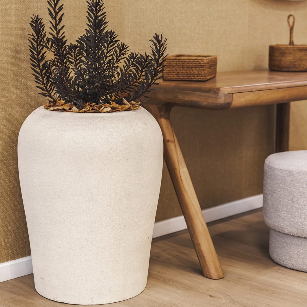 Outdoor-indoor Shapescape planter strike the perfect balance between strength and sophistication. Made from a composite of cement, sand and fibreglass, they can happily withstand the effects of the elements, while integrated drainage holes ensure healthy plant growth. These planters also feature a hand finish, with subtle textural variations that highlight their artisanal character. Choose from an array of contemporary shapes, all designed to enhance your greenery while making a design statement.Variations in size, colour and texture will occur due to it’s hand finish. Available in classic black and white.