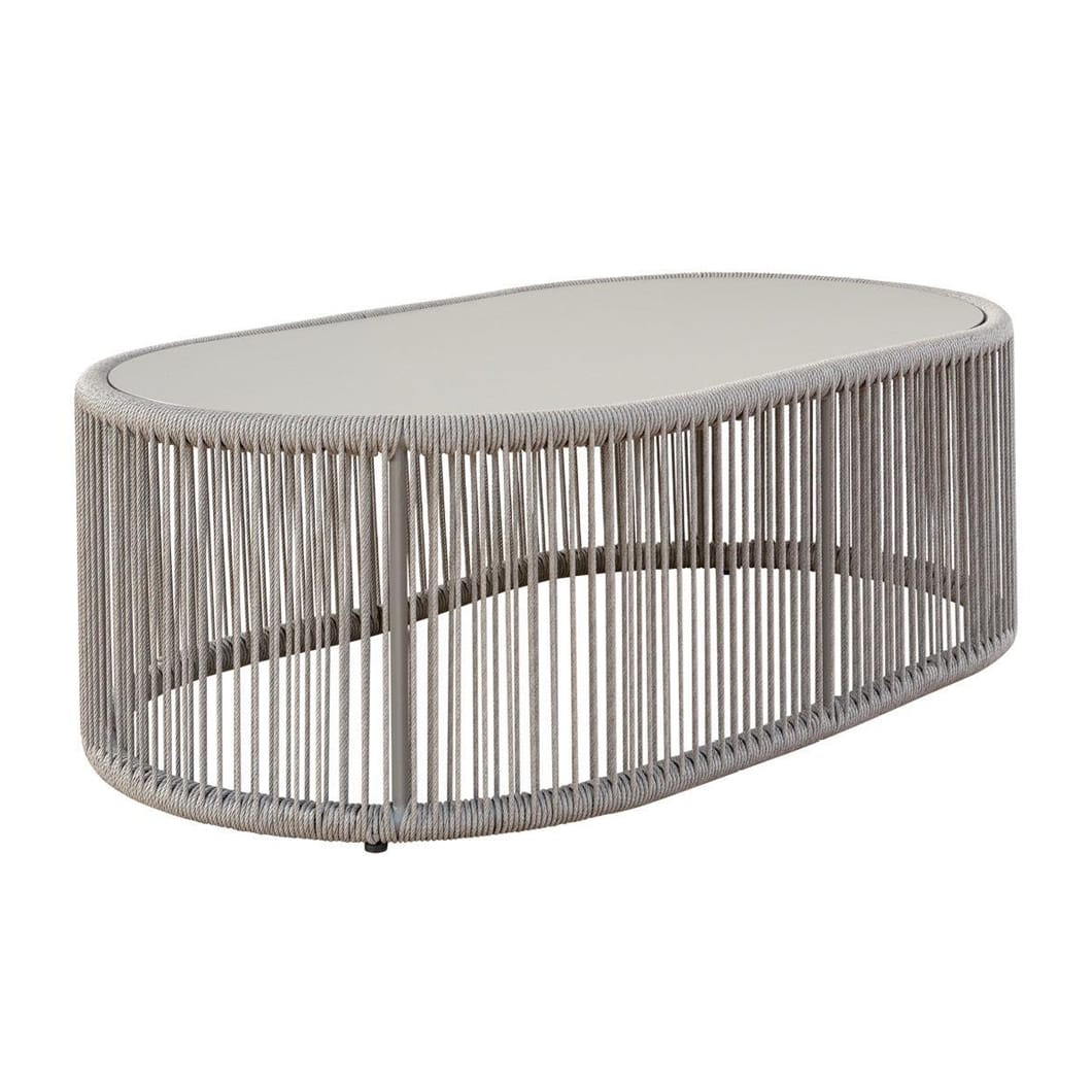 Bacalar coffee and side tables expertly combine contemporary design with natural textures. Durable aluminium provides a sleek tabletop, while elegant PET wicker rope detailing forms the body of the tables, adding a warm, artisanal touch. Lightweight yet sturdy, these fully outdoor accents are ideal for open-air entertaining or everyday use.