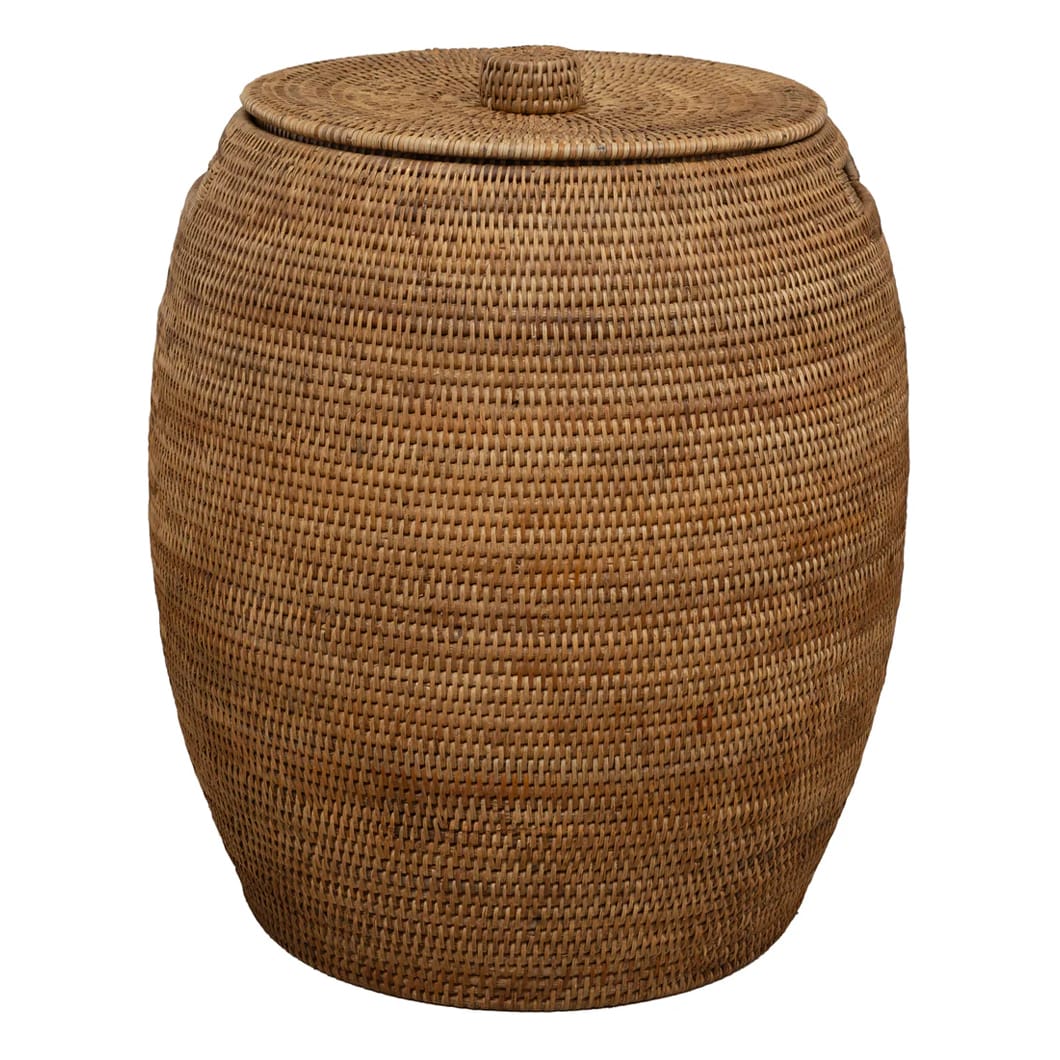 Handwoven, textural rattan storage baskets in various sizes, shades, and styles.