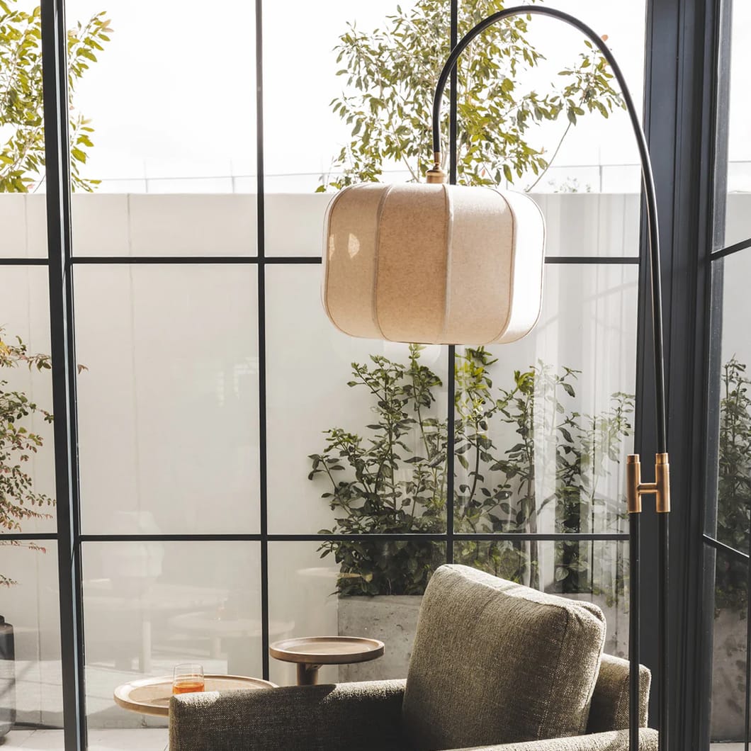A harmonious blend of modern sophistication and timeless elegance finds expression in the Galleria floor lamp. Its curved steel body arcs gracefully, while a soft, hand-stitched linen shade creates an inviting glow. This lamp is perfectly poised to complement contemporary interiors and will illuminate a home with understated luxury.