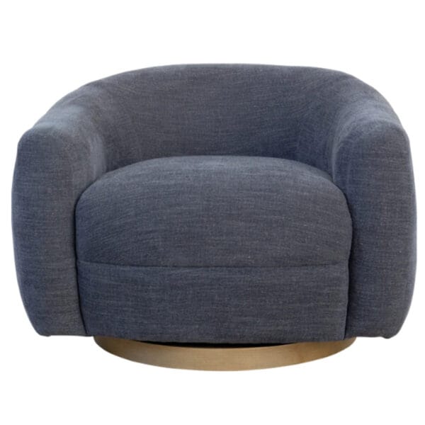 The Grandeur swivel chair is a head-turning accent that will add superior comfort to living areas, thanks to its generous proportions and inviting curves. It’s upholstered in a practical and pleasing blend of 97% polyester and 3% linen, and features a frame and base made of solid wood.