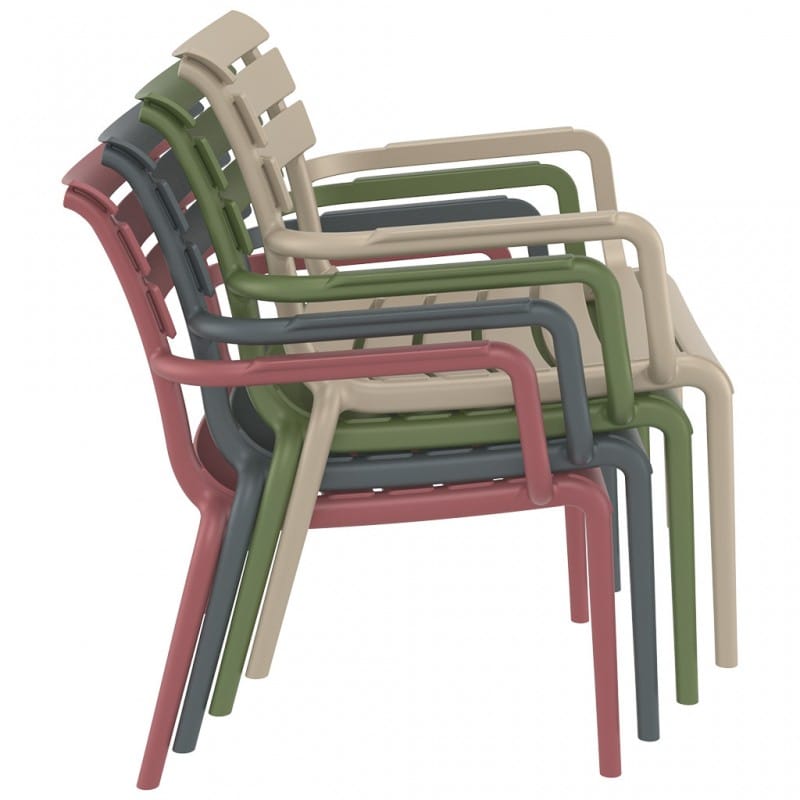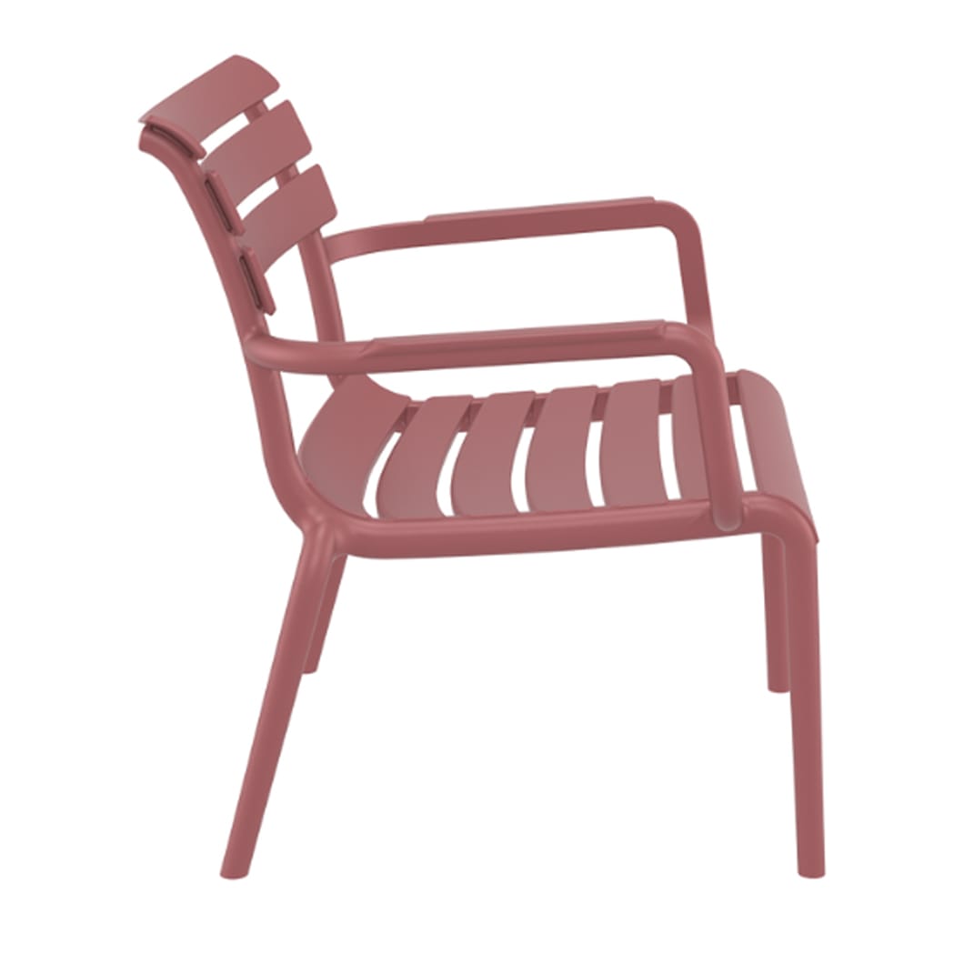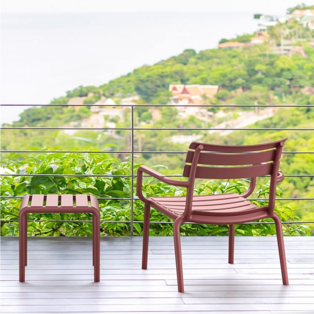 The Paris Outdoor Lounge Armchair is stackable and produced with a single injection of polypropylene reinforced with glass fiber, for indoor and outdoor use and with non-slip feet. Pair it with the matching footrest table, perfectly designed to echo the chair’s stylish silhouette.