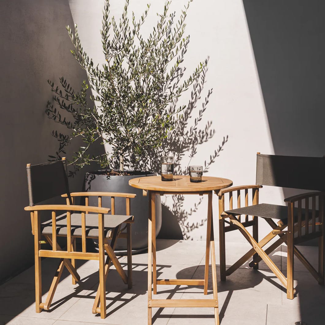 Crafted from durable, weather-resistant acacia wood and 100% olefin sling fabric, the fully outdoor Safari chair is made for long, lazy days in the open air. Its natural wood grain finish gives it rustic charm, while its foldable design makes it easy to set up and store. Available in two colour ways. Minor assembly required.