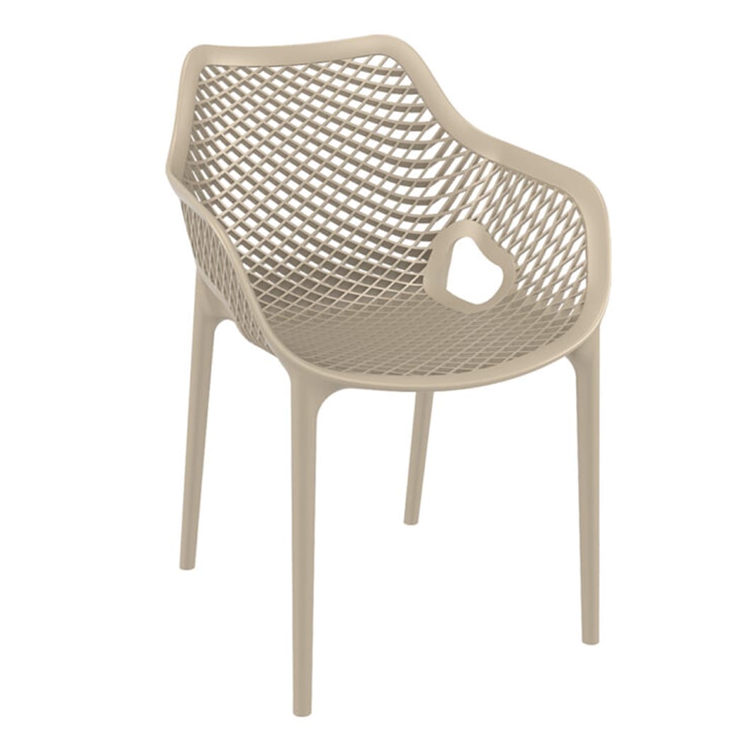 The Siesta Exclusive Air armchair is produced with a single injection of polypropylene reinforced with glass fibre obtained by means of the latest generation of air moulding technology with neutral tones. Suitable for indoor and outdoor use.