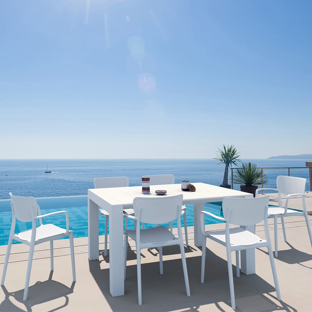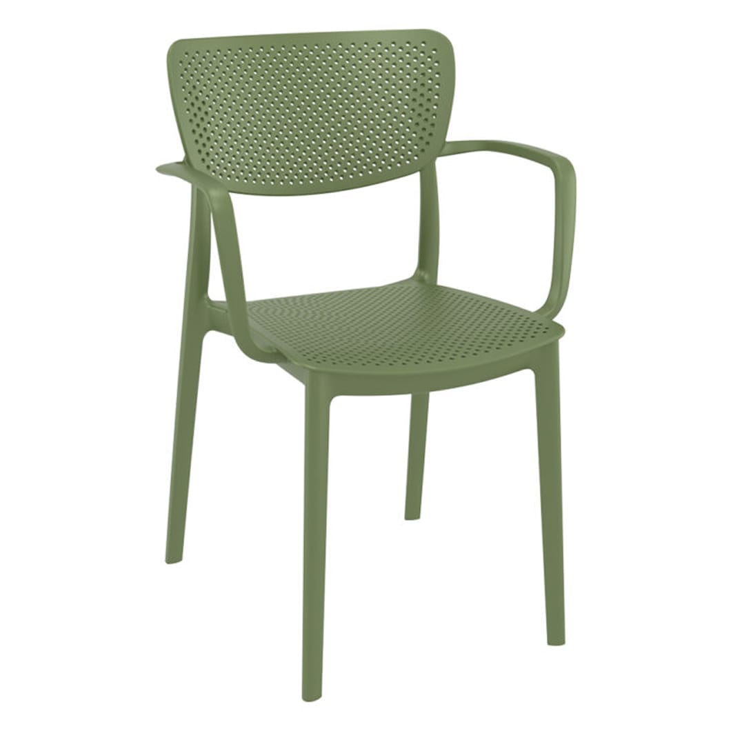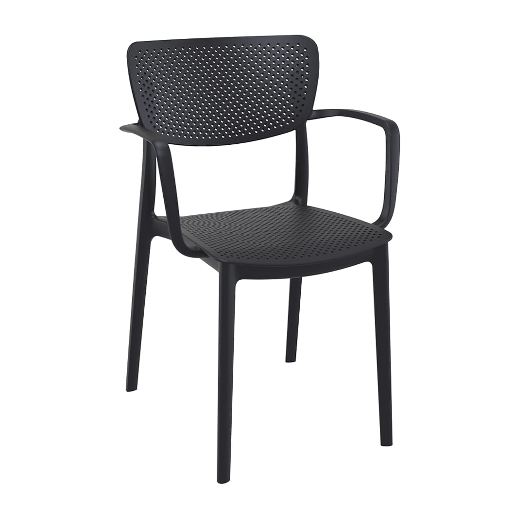 This stylish armchair combines modern design with practical functionality. Made from durable polypropylene reinforced with glass fiber obtained by means of the latest generation of air moulding technology. Features a perforated seat and backrest that ensure excellent ventilation, making it ideal for both indoor and outdoor use.