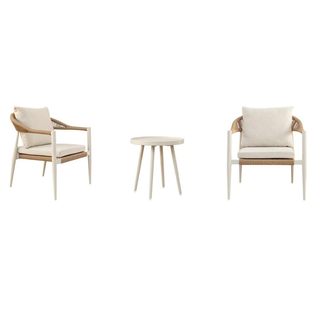 Fully outdoor aluminium balcony set featuring a side table and two single seaters.